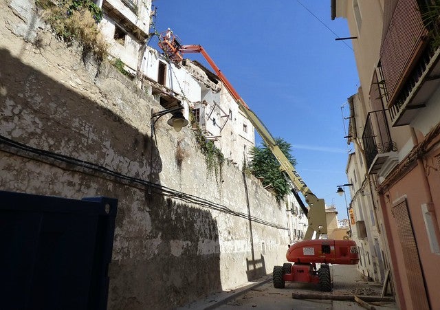 L’Ajuntament d’Ontinyent està procedint a l’enderroc de dos immobles al Carrer Callarís, una via que ja havia estat tallada pel consistori davant el risc d’un enfonsament parcial que finalment es va produir en juliol, sense causar danys a les persones.
