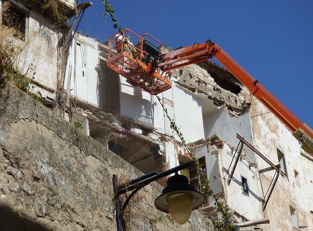 L’Ajuntament d’Ontinyent està procedint a l’enderroc de dos immobles al Carrer Callarís, una via que ja havia estat tallada pel consistori davant el risc d’un enfonsament parcial que finalment es va produir en juliol, sense causar danys a les persones.