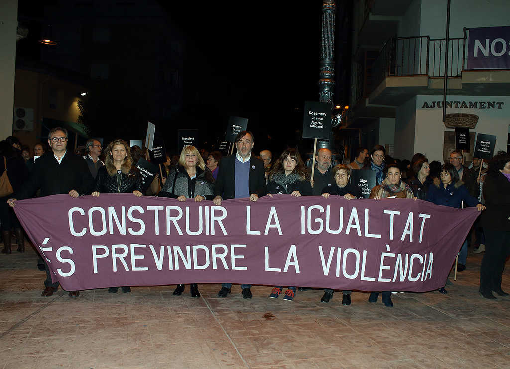 La Marxa, que va partir de la Plaça de l’Ajuntament, anava encapçalada per una pancarta amb el lema “Construir la igualtat és previndre la violència” i els participants portaven 57 cartells amb els noms de les víctimes de la violència masclista aquest any 2015.