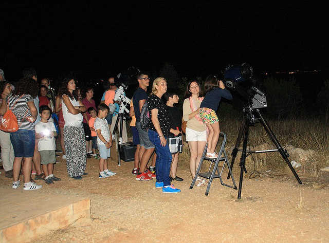 Tot seguit, tant grans com menuts feren cua per a observar el cel amb els quatre grans telescopis que l’Agrupació Astronòmica de la Safor havia portat per a l’ocasió. Malgrat l’aparició d’alguns núvols que dificultaren la visió, Marcelino Alvarez i Enric Marco, membres de l’associació, pogueren aconseguir que es veiera Júpiter i els més afortunats també Mart o Saturn i els seus anells. Tota la gent va quedar fascinada ja que per a molts era la primera vegada que veien a través d’este instrument.