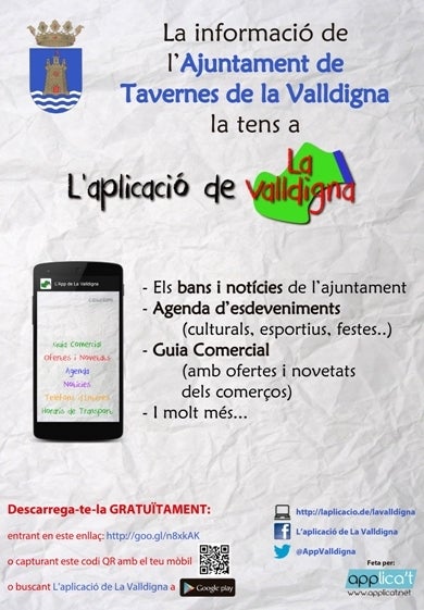 L’Aplicació de la Valldigna, creada per l’equip APPLICA’T, és una ferramenta d’informació que ja tenen instal·lada més de 1.200 usuaris. Amb esta aplicació, els ciutadans poden veure la informació que l’Ajuntament publica, com els bans (classificats per departaments), les notícies i les activitats relacionades amb el consistori.