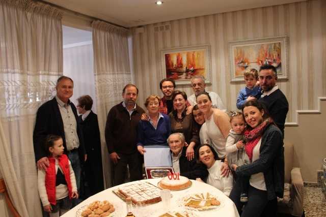 El primer edil edetà ha volgut felicitar, en nom de l’Ajuntament, a Francisco Escrig i li ha obsequiat amb una placa en record de la celebració d’este dia tan especial per a ell que ha compartit amb els seus familiars i persones acostades.