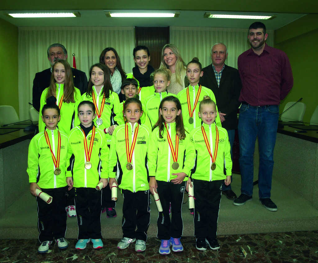 El saló de plens va acollir l’acte públic, a qui van assistir també els familiars de les cinc gimnastes prebenjamins que ostenten el títol de Campiones d’Espanya, de les cinc alevins, medalla de plata i per tant subcampiones, i de la sènior, qui junt amb el conjunt del club Riba-roja es va proclamar subcampiona d’Espanya i Campiona d’Espanya per Autonomies.