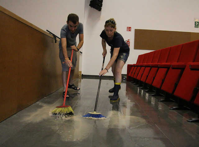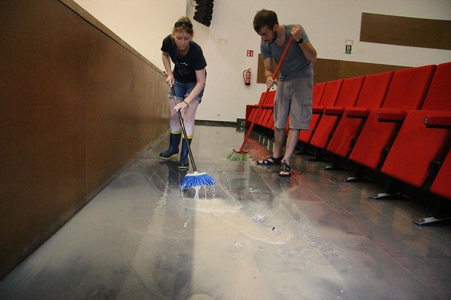 «L’aigua arribava a l’altra punta de l’auditori, inundant tota la primera fila de butaques en una considerable quantitat i això ens ha obligat a actuar ràpidament», ha explicat la primera edil que ha assegurat que «hem comprovat que la bomba d’aigua instal·lada per a evitar precisament aquestes situacions, sí que ha funcionat, però és, a totes llums, insuficient per a evitar que l’aigua entre a l’Auditori i, de nou, entra aigua als veïns».