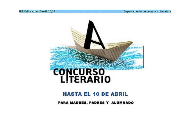 El jurat estarà integrat per professores i professors del Departament de Castellà de l’IES Callosa d’en Sarrià i el lliurament de premis es realitzarà el dia que es commemori el dia del llibre, data que serà posterior al 24 d’abril, per coincidir amb el període vacacional de Pasqua.