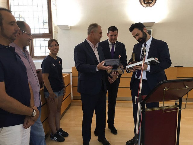 En la jornada de hui ha tingut lloc l’acte de formalització de l’entrega per part del director del I Campus de Futbol Fiorentina Camp celebrat a Llíria, Alejandro Rosalén, d’una donació de 5.500 euros a la judoca Mónica Merenciano i al Llíria CF.