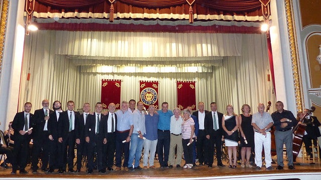 En esta actuació extraordinària, el Consistori va voler oferir també un reconeixement públic als 19 músics de Llíria que integren actualment la plantilla de la banda barcelonina o que han passat per ella.