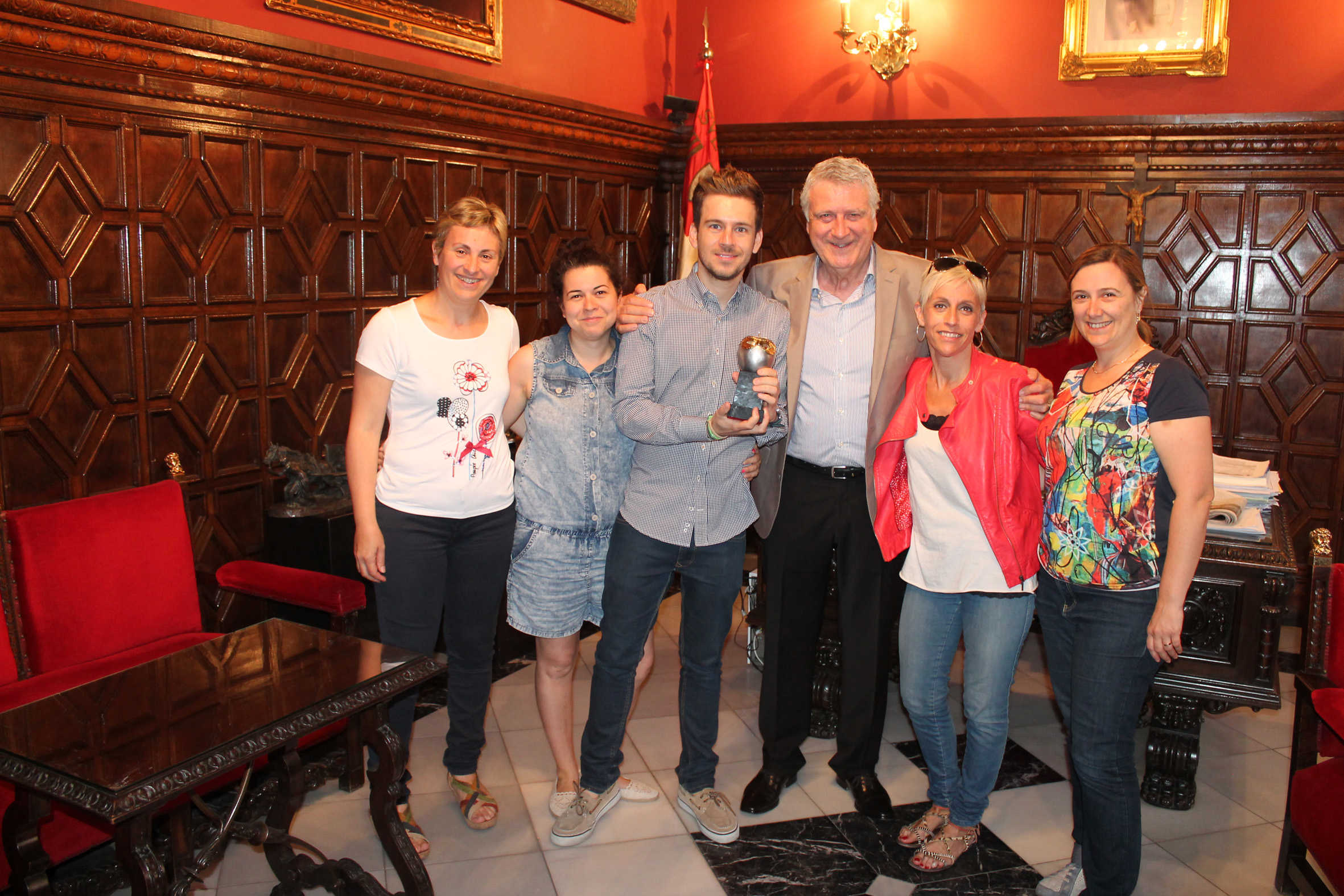 Representants de la companyia suecana Maduixa Teatre, amb el seu directoral front, Joan Santacreu, han visitat este matí el consistori per a mostrar a les autoritats el prestigiós premi Max obtingut dilluns passat al Millor Espectacle Infantil per Dot.