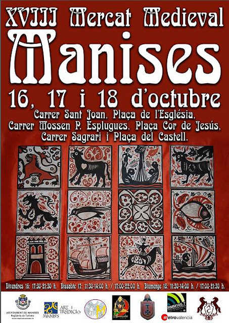 L’Ajuntament de Manises juntament amb la regidoria de Turisme han organitzat un any més el Mercat Medieval que tindrà lloc el cap de setmana vinent en el casc històric del municipi. La inauguració institucional del mercat serà el dia 16 d’octubre a les 19:00h a la plaça de l’església juntament amb un cavaller acompanyat de percussió.