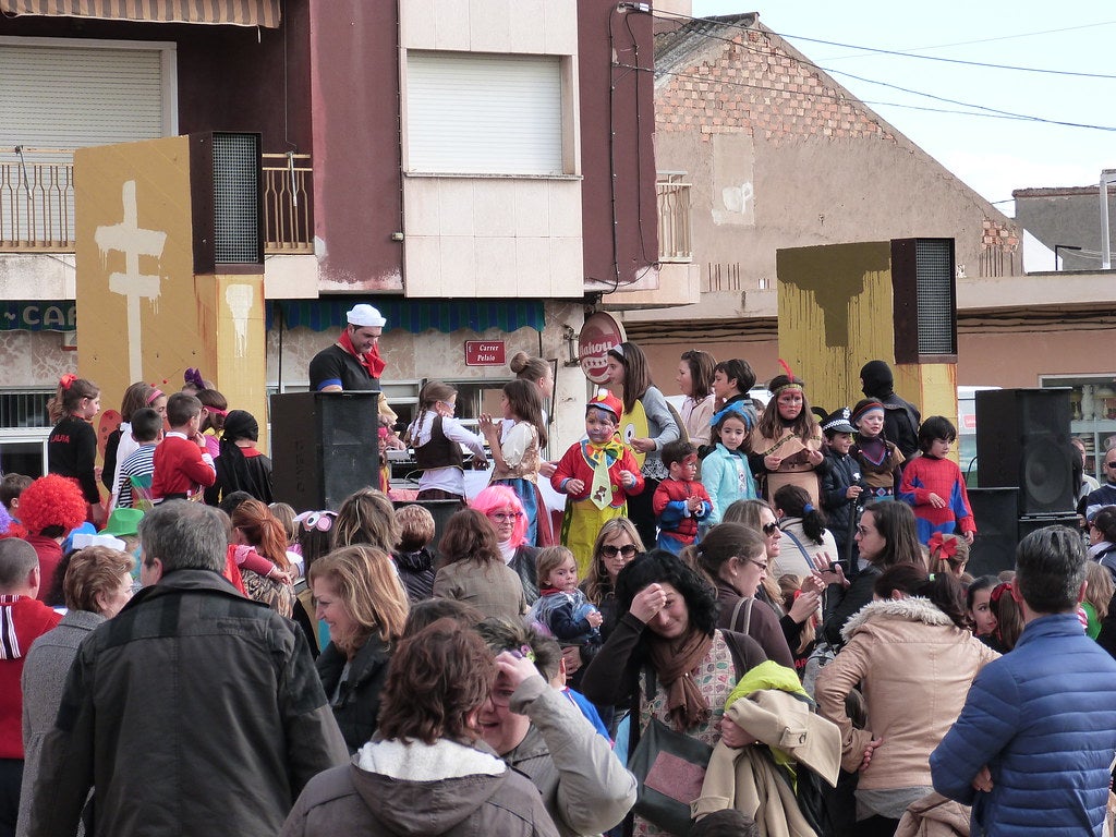 Cap a les 3 del migdia van eixir en cercavila des del Poliesportiu Municipal i des de l’escoleta infantil municipal els menuts disfressats acompanyats per membres de la Societat Artística Musical d’Alginet i l’Escola de Teatre GIT Avant Va el Carro.