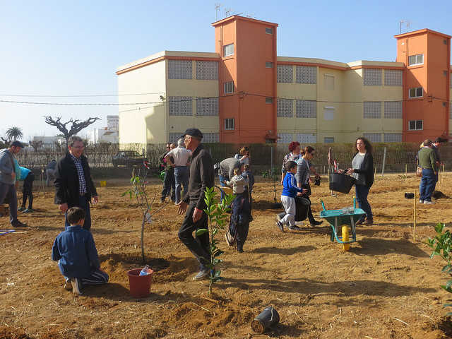 Famílies senceres, persones grans, joves, gent de totes les edats van participar en la plantada, que van coordinar els experts en agricultura ecològica Mariano Bueno i Jesús Arnau. Al final de la jornada es va escampar una capa de triturat per tota la parcel·la que servirà per a minimitzar al màxim la necessitat de reg i de manteniment.