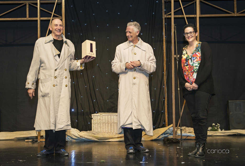 Humor enginyós i imprevisible i subtilesa interpretativa la que van demostrar de nou sobre les taules els dos actors en l’últim muntatge de Vol-Ras. “La cita teatral era històrica i va congregar a 318 espectadors que no van voler perdre’s l’acomiadament públic de la companyia”, comenta l’edil, Teresa Iborra, la qual va voler sumar-se al tancament oficial dels seus 35 anys en l’escenari, brindant-los un xicotet homenatge. Conclosa l’escenificació de “Da Capo”, la regidora els va fer entrega de l’emblema de la població, una miniatura del monument històric més antic: la torre àrab Razef, entre aplaudiments i ovacions del públic present en la sala.