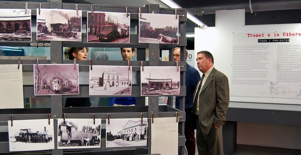 El director gerent de FGV i l’alcalde de Castelló Óscar Noguera han visitat la mostra denominada ‘El Trenet a la Ribera: idees i projectes’.