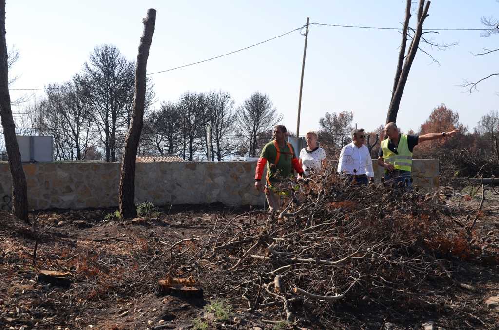 Xàbia. Dilluns, 20 d’octubre de 2014. L’alcalde de Xàbia, José Chulvi, i la regidora de Medi Ambient, Doris Courcelles, han estat avui en la Plana supervisant els treballs forestals que ha emprès l’Ajuntament per a recuperar la zona després de l’incendi forestal del passat 11 de setembre. Acompanyats pels dos biòlegs responsables del pla forestal, els edils han comprovat l’avanç dels treballs en les dues zones que necessitaven una actuació més urgent, els voltants del camí de la Cova Tallada i la zona més propera al far, ambdues amb el llast d’haver sigut ja arrasades per incendis en la dècada dels 90, i en els quals la intervenció s’ha fet contrarellotge per a evitar interferències en els processos de rebrot i germinació de les plantes.