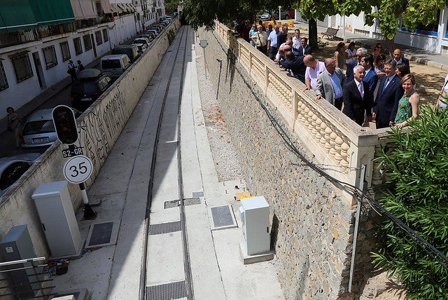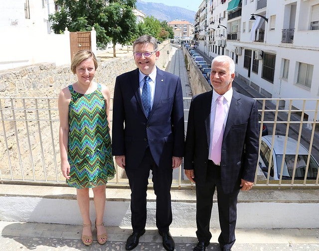 L’acte començava en la plaça de la Filharmònica, on l’alcalde ha rebut al president, i on han pogut comprovar l’acabat de les obres en esta zona d’Altea que han suposat el cobriment de les vies del tren entre esta plaça i el carrer la Sèquia. L’aspecte de la plaça ha millorat amb l’acabament de pedra del mur que cobreix el túnel.