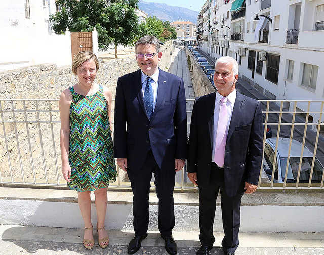 Seguidament ha tingut lloc un acte a la plaça de l’Ajuntament, precedit per la signatura del president al llibre d’honor de la ciutat, on Puig ha avançat que la Generalitat proposarà “un major avanç en el camí del tren fins a Dénia” en els Pressupostos de la Generalitat de 2017. El cap del Consell ha afirmat que aquesta actuació en el tram Altea-Calp, en la qual s’han invertit al voltant de 9 milions d’euros, i la licitació d’una nova actuació a la zona, valorada en 4 milions, demostren “el compromís de la Generalitat amb les comarques de la Marina Alta i la Marina Baixa”. En paral·lel a aquestos projectes, el president ha insistit que el Consell continuarà defensant “públicament i amb tota la contundència” que el pròxim Govern d’Espanya assumisca la reivindicació del Tren de la Costa. Puig ha assegurat que aquesta infraestructura “té una gran rendibilitat econòmica i social” i que, per tant, “no és un caprici”.
