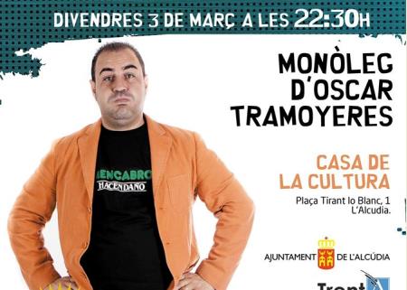El proper divendres, 3 de març A les 10.30 de la nit Actuació d’humor amb el monòleg d’Òscar Tramoyeres. Preu entrades: 5€. Venda anticipada, a la Casa de la Cultura en horari de 9 a 1 als matins i de 4 a 8 a les vesprades. Vos esperem! Guardamar del Segura