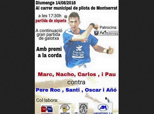 El Club de Pilota de Montserrat comunica que el diumenge dia 14 a les 18:00h de la vesprada se celebrarà la partida de Pilota Valenciana, Trofeu de Festes, al carrer de la pilota.