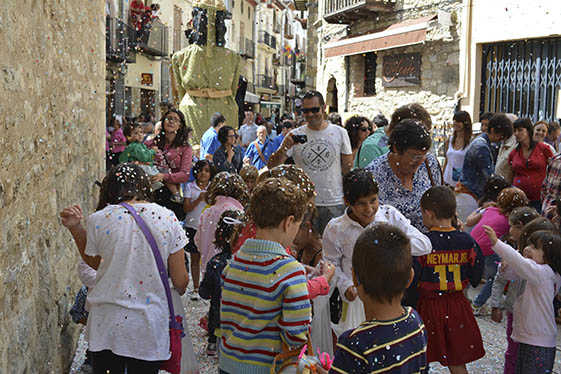 Els gegants de Morella, que desperten una gran expectació i admiració entre els més menuts, han estat l’element central de l’acte dirigit als xiquets i xiquetes que ha tingut lloc avui. La jornada s’ha iniciat amb un cercavila, que també ha comptat amb els cabuts i els Gaiteros de Morella i que ha tingut una grandíssima participació, de l’ajuntament fins a la Plaça de la Basílica, mentre que molts voluntaris llançaven caramels, serpentines o confeti.