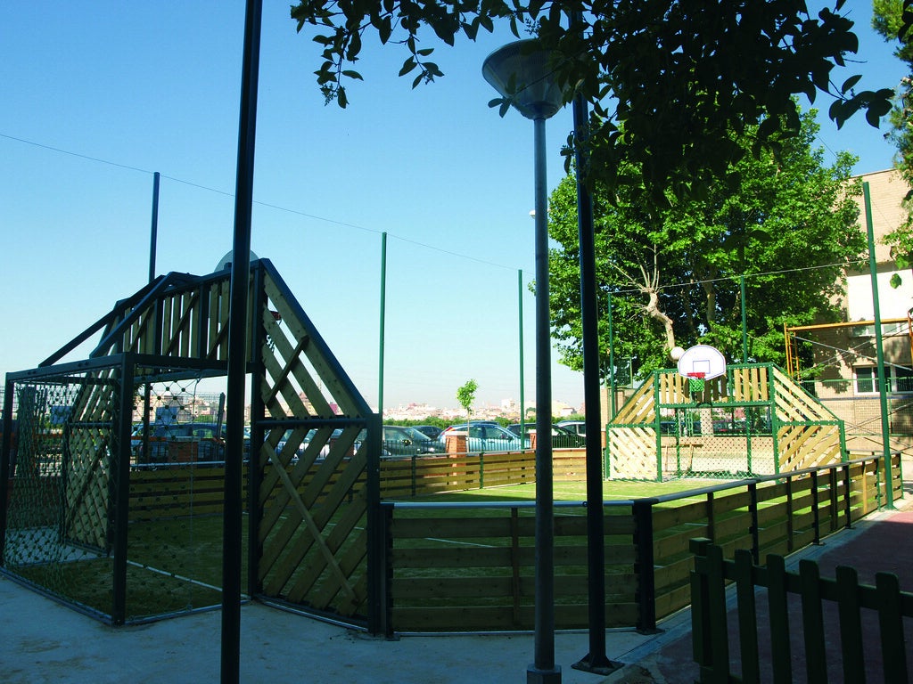 El multiespai esportiu, que manté unes dimensions de 7,96×17,06 metres, complix amb la normativa estatal i europea quant a qualitat i seguretat, a més d’incorporar paviment de gespa artificial homologat. Així mateix, tot el recinte esportiu està rodejat de tanques de fusta homologades i tractades per a exterior, les zones laterals del qual mantenen un metre d’altura i les posteriors inclouen porteries de futbol coronades per taulers i cércols de bàsquet antivandàlics i regulables a tres altures.