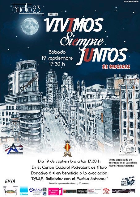 Així doncs, el proper 19 de setembre a les 17.30 hores, al Centre Cultural Polivalent de la Vila de Muro, arriba a Muro el gran musical “Vivimos Siempre Juntos” de Studio 23 en benefici del Poble Saharaui.