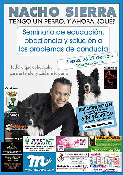 El seminari, amb places limitades, serà impartit per l’especialista en la matèria, Nacho Sierra, conegut pel seu treball en programes de televisió. L’Associació Cultural Esportiva Canina Valenciana entregarà part dels diners que es recapten amb esta iniciativa a la Protectora d’Animals de Sueca.