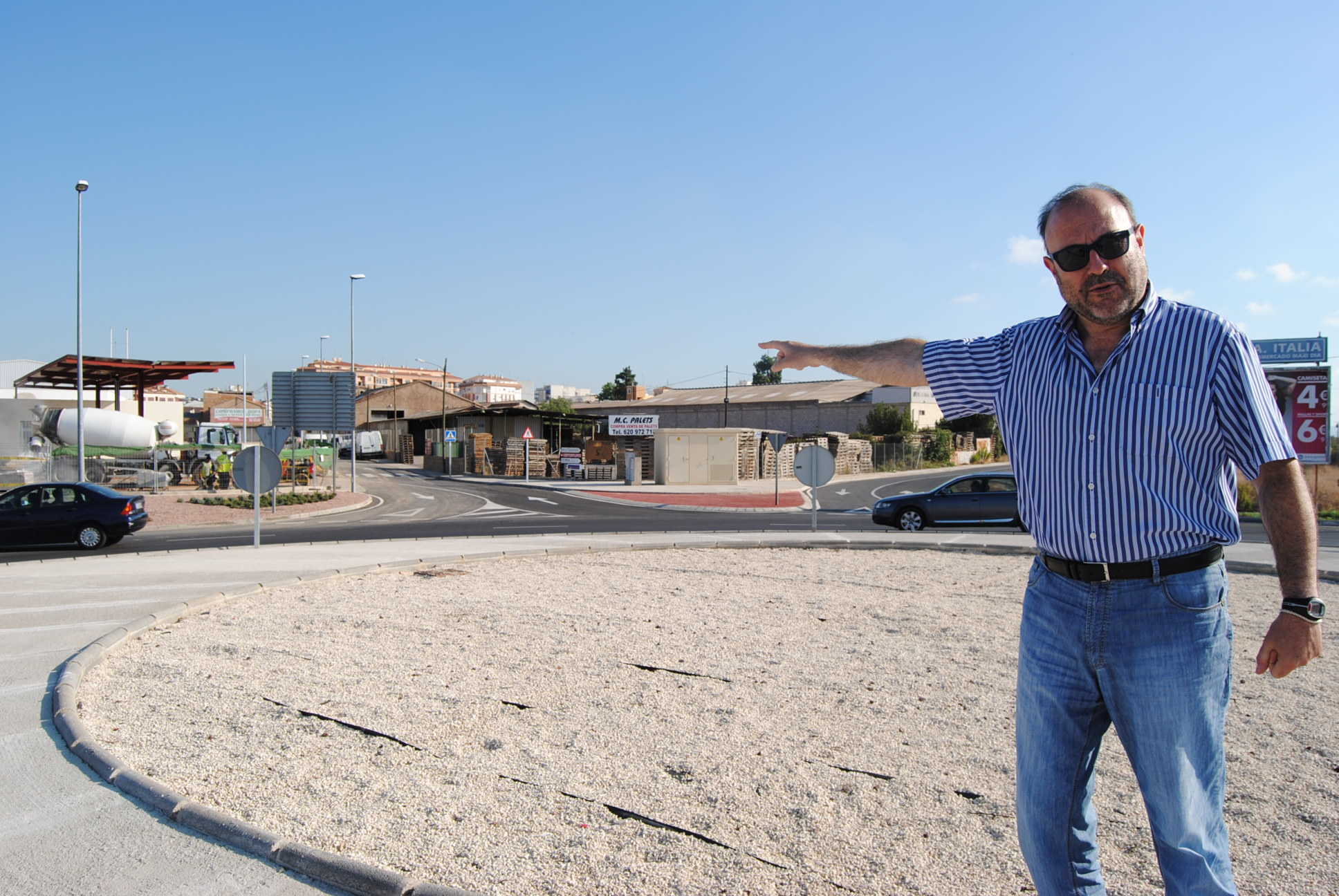 Vila-real, 19 d’agost de 2014. L’entrada est de Vila-real ha renovat completament la seua imatge i millorat la seua seguretat, gràcies a la construcció d’una nova rotonda, que pràcticament duplica l’anterior, inclosa en la urbanització de l’accés des de Borriana per part d’una nova gasolinera instal·lada en la zona. El regidor de Territori, Emilio M. Obiol, ha visitat recentment la infraestructura, “fruit de les moltes negociacions, l’esforç i la gestió realitzada des del departament d’Urbanisme per a fer possible aquesta millora ostensible d’una de les principals entrades a la ciutat, que aconsegueix així per fi dotar-se d’un accés digne per l’est”.