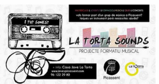 La Regidoria de Joventut i la Casa Jove La Torta posen en marxa “La Torta Sounds”, un nou projecte d’oci educatiu i musical per als joves del municipi d’entre 12 i 18 anys, un laboratori musical perfecte per formar part d’un grup amb un objectiu clar: traure a concert temes, i donar cabuda a totes les propostes tipus per assajar-les i tocar-les posteriorment.