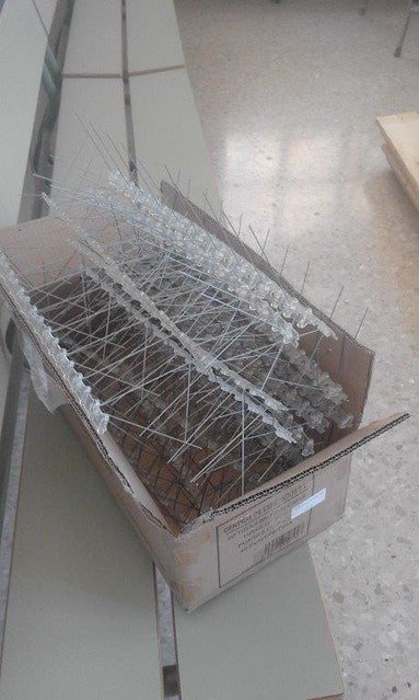 Amb l’objectiu d’evitar la nidificació i la presència de coloms en la cornisa i a l’interior de la teulada, s’ha col·locat tela conillera en els forats de la cornisa i s’han instal·lat pues en cadascuna de les baixants de la coberta. Amb aquesta actuació s’ha aconseguit desplaçar els coloms dels voltants de l’edifici i s’ha evitat la gran acumulació d’excrements en les façanes i en les zones d’esbarjo dels alumnes.