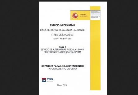 8 mesos més tard d’allò previst, el Ministeri de Foment ha publicat l’Estudi Informatiu del Tren de la Costa. L’anunci es troba en el Tauler d’Anuncis de la pàgina web de l’Ajuntament d’Oliva. El document es pot consultar físicament en el Departament d’Urbansime (edifici l’Almàssera) i virtualment en la pàgina web del Ministeri de Foment.