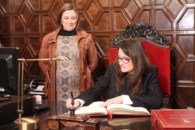 La vicepresidenta de la Generalitat Valenciana va aprofitar la seua visita a la capital riberenca per deixar constància del seu pas pel municipi al Llibre d’Or de la ciutat.