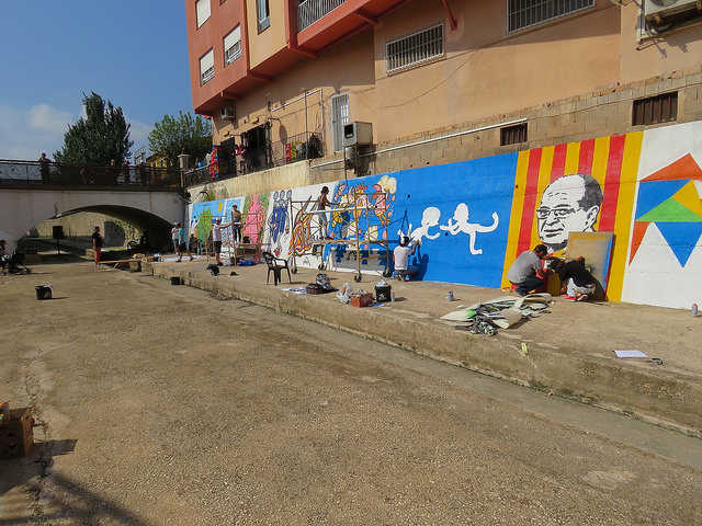 Prèviament, els participants van assistir a les explicacions tècniques impartides per Larouch Art de Carrer; els seus integrants van supervisar i van ajudar posteriorment els jóvens artistes en l’execució de les seues obres. Els murals, realitzats durant tot el matí a un costat i a l’altre del llit del riu, han omplit de colorit i han dotat d’una nova imatge al riu Alberca al seu pas pel nucli urbà. En total es van pintar 120 m² del llit del riu.