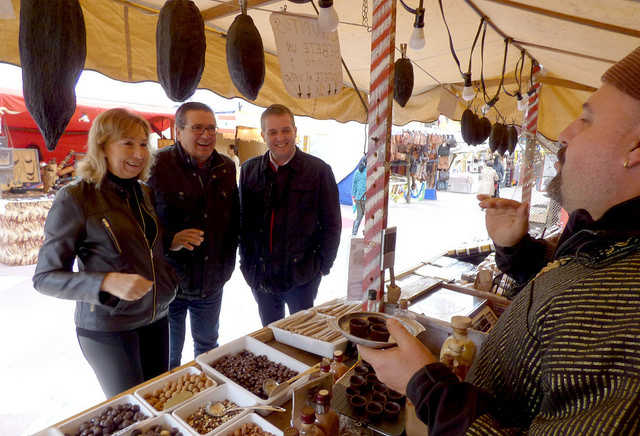 La Plaça de la Concepció d’Ontinyent acull un “Mercat de Reis” que compta amb més de 30 llocs de venda i activitats d’animació cada mitja hora, al marc de la campanya “Ontinyent Il·lusiona” impulsada per l’Ajuntament. Els regidors Jaime Peris, Manuel Cuesta i Tudi Guillem visitaven aquest dimarts un mercat que posa a l’abast de veïns i visitants fins dijous 5 de gener tota mena de productes artesans en marroquineria, xocolata i dolços de diferents tipus, forn de llenya, bijuteria, fusta, cuir, joguets o minerals, a més d’una taverna i àrees de jocs infantils amb un carrusel o una colxoneta.