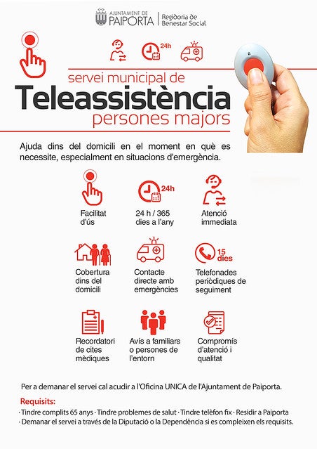 Els requisits són, a més d’estar empadronat a Paiporta, tindre complits 65 anys, patir problemes de salut, disposar de telèfon fix, residir a la localitat, i demanar la teleassistència a través de la Diputació de València o la Llei de Dependència, si es compleixen els requisits per a ambdues vies. Mentre arriba el reconeixement d’aquestes dues instàncies, l’Ajuntament es fa càrrec del servei i, si es compleixen els requisits, el consistori prestarà el servei independentment de la resposta que obtinga l’usuari de la Diputació o la Dependència.