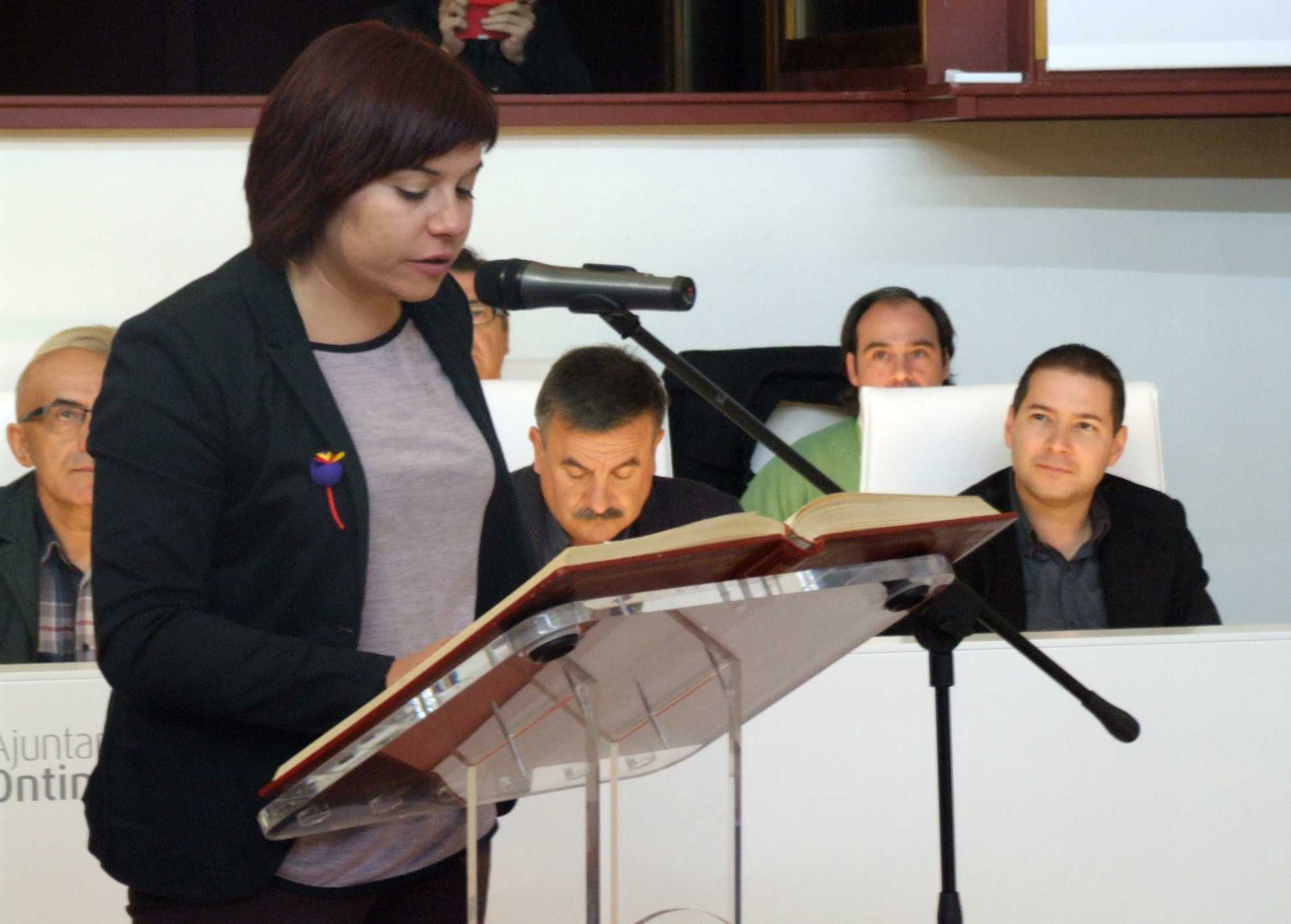 García, a més de regidora i portaveu d’Esquerra Unida del País Valencià, era nomenada representant de l’Ajuntament en la Mancomunitat de Municipis de La Vall d’Albaida, el Fons Valencià per la Solidaritat i el Consorci de les Comarques Centrals Valencianes. García, que “com a ciutadana partidària d’un model republicà, federal, solidari i laic” prometia complir amb les obligacions del seu càrrec, rebia la insígnia de l’Ajuntament d’Ontinyent de mans de l’Alcalde de la ciutat, Jorge Rodríguez, que li donava la benvinguda a la corporació municipal.