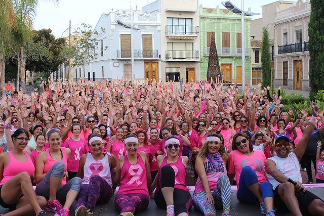 El motiu d’esta classe de zumba al carrer és recaptar fons per al càncer de mama, coincidint amb la data internacional d’esta circumsntància. En una plaça del municipi tenyida de rosa, tècnics, entrenadors i professionals d’este ball prepararen una sessió divertida per a les més de 400 persones que acudiren al llarg de les més de dos hores que va durar esta iniciativa.
