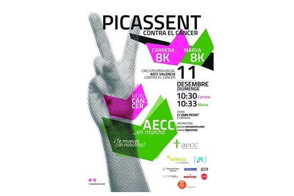 El pròxim 11 de desembre, Picassent celebra la IV edició de la carrera contra el càncer, un recorregut de 8 kilòmetres de solidaritat i lluita contra esta malaltia. Les inscripcions, a un preu de 5 euros, es realitzaran via on line a través de la plataforma www.runcancer.com o www.toprun.es. Així també, els dies 1, 2, 7 i 9 de desembre, els membres de la Junta Local contra el Cáncer de Picassent, estaran a la seu social del Musical, C/ Nou nº 17, de 17 a 19:30 hores per realitzar inscripcions.