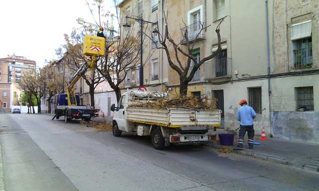 Durant aquest mes de febrer s’està procedint a la poda de l’arbrat viari de la ciutat, amb la finalitat de realitzar-ne una reducció de la copa. Els treballs són realitzats per la Brigada Municipal de Jardins i per empreses a les quals, per mitjà del contracte corresponent, se’ls ha adjudicat la poda dels arbres en alguns carrers.
