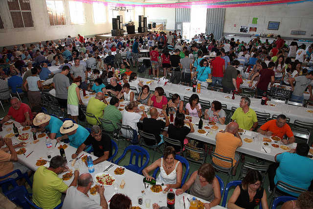 Tots els seus integrants es reuneixen al poliesportiu per cuinar les paelles que entraran a concurs i després degustar-les.