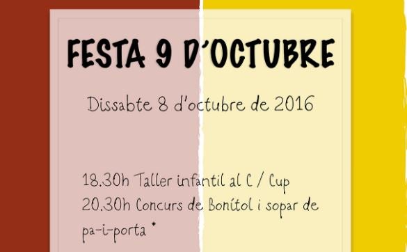 El dissabte 8 d’octubre, a Potries, es realitzaran les següents activitats al carrer del Cup: