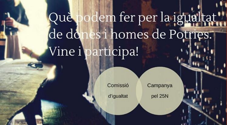 Dins de la campanya per al 25N, Dia Internacional contra la Violència Masclista, presentem “Potries: un municipi per la igualtat de gènere”. Es tracta d’una xerrada que tindrà lloc el proper divendres 18 de novembre, a les 19h a la Fonda d’Entitats, on tractarem la igualtat entre dones i homes i les accions diàries que totes i tots podem fer per aconseguir una igualtat real.