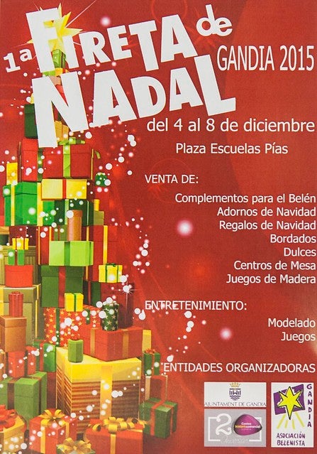 Gandia estrena demà divendres, 4 de desembre, la primera Fireta de Nadal. Estarà ubicada a la Plaça de les Escoles Pies i estarà oberta al llarg de tot el pont festiu, és a dir, fins al dimarts dia 8.