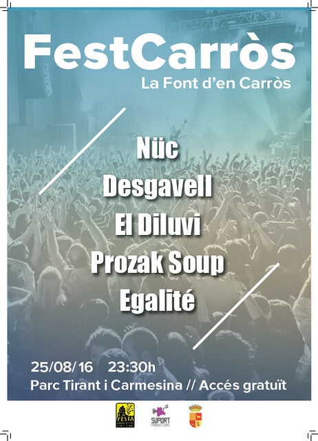 23.30h FestCarròs: Nit de música en valencià al Parc Tirant i Carmesina amb la participació de Desgavell, Nüc, Prozac Soup, Egalité, El Diluvi.