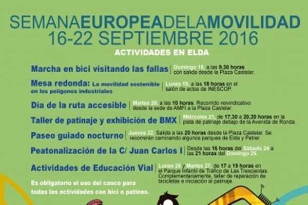 Les activitats de la Setmana Europea de la Mobilitat s’obrin a Elda diumenge que ve 18 amb un recorregut amb bici visitant les falles. L’eixida en grup serà a les 9,30 del matí des de la Plaza Castelar, oferint-se un refrigerio als participants a meitat del recorregut.