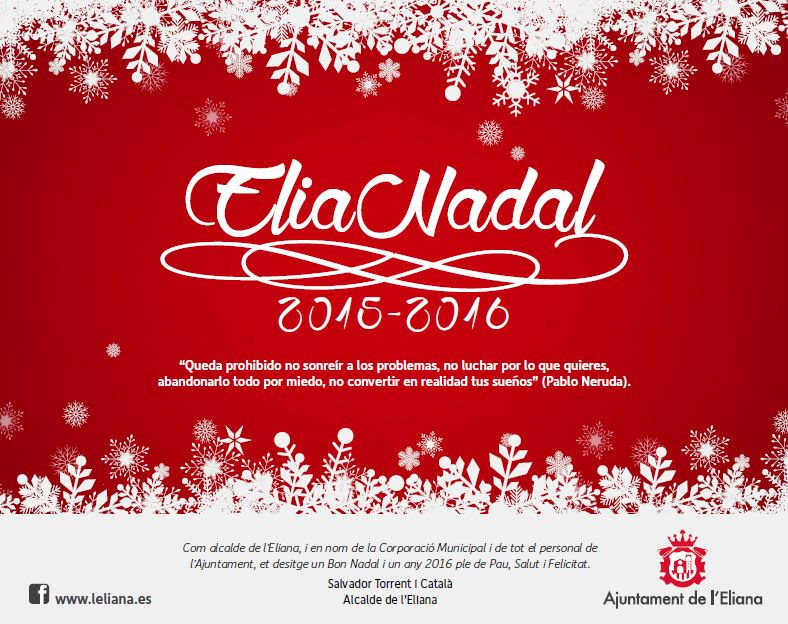 Salva Torrent, alcalde de l’Eliana, ha destacat que “el programa és molt ampli i complet. Anem a tindre propostes nadalenques per a tots els públics, que ens van a permetre durant quasi un mes tenir el millor ambient de la comarca, moltíssima gent en el carrer, moltíssimes persones que vindran d’altres localitats a passar el dia a l’Eliana, i el principal és que anem a fer gaudir als més xicotets del Nadal a l’Eliana”.
