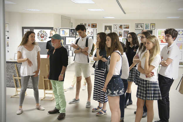 Este collage artístic, amenitzat per actuacions d’alumnes de música, cant i dansa, va comptar amb la presència de l’artista valencià Uiso Alemany, qui va explorar amb els jóvens artistes tots els racons de l’exposició. En eixa atmosfera educativa els va encoratjar que continuaren sent fidels a la llibertat creativa que observava en les peces exposades: “L’art no conta històries, contaemocions. Per això no heu de tindre por d’expressar el que sentiu. És molt important que plasmeu la vostra subjectivitat en l’art que desenrotlleu”.