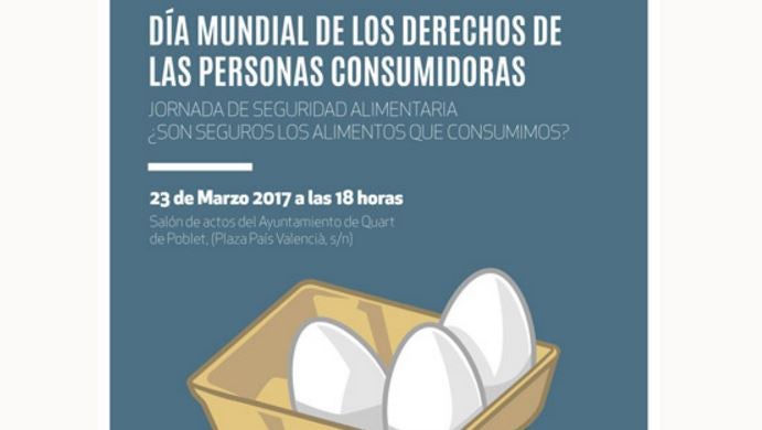 L’Ajuntament de Quart de Poblet, a través de la Regidoria de Consum, que dirigix Amparo Torner, ha organitzat per al pròxim 23 de març, a les 18 hores en el Saló d’Actes de l’Ajuntament, una jornada de seguretat alimentària amb el títol “Són segurs els aliments que consumim?”, amb motiu de la celebració del Dia Mundial dels Drets de les Persones Consumidores el passat 15 de març.