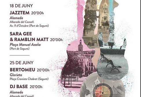 La delegació de Joventut de l’Ajuntament de Sagunt ha organitzat per als pròxims dissabtes una sèrie d’activitats musicals en les places del municipi. Aquesta iniciativa s’emmarca dins del Dia Europeu de la Música, que es commemora el 21 de juny, aprofitant el primer dia d’estiu. Concretament, Joventut ha programat per als dissabtes 18 i 25 de juny quatre concerts en el carrer, amb propostes musicals diferents en diversos espais urbans de Sagunt i del Port de Sagunt.