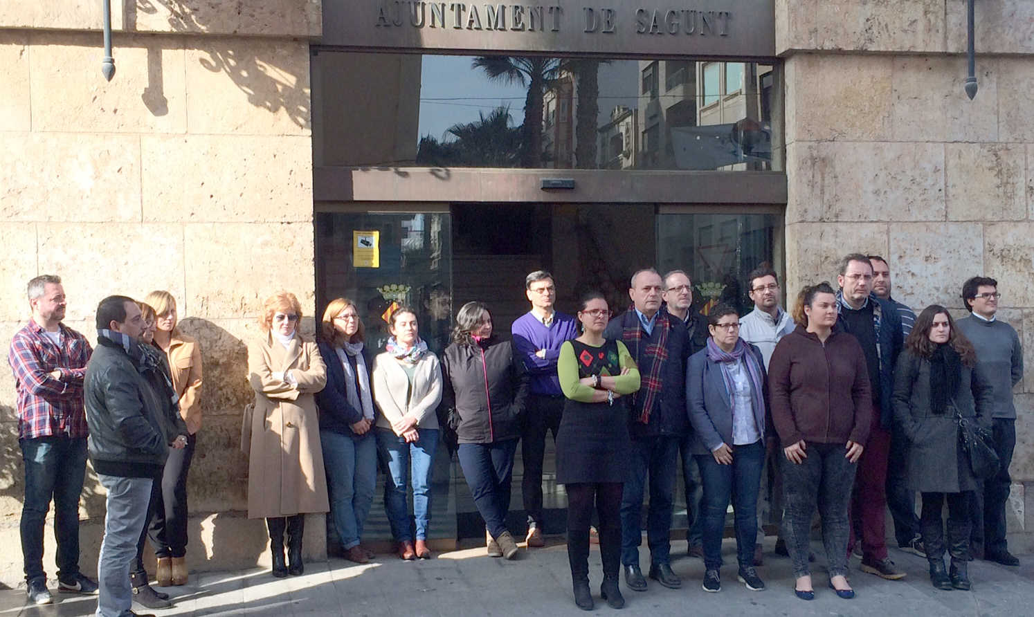 Polítics i funcionaris han guardat un minut de silenci en les portes de l’Ajuntament de Sagunt i de la Tinència d’Alcaldia del Port de Sagunt.