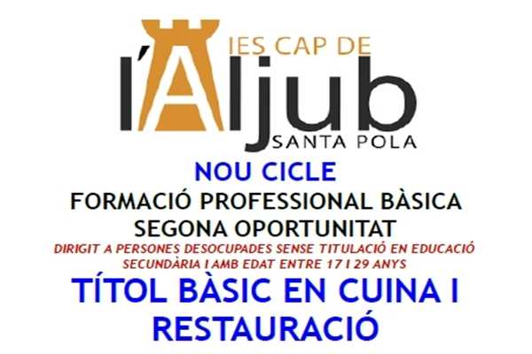 A Santa Pola designen i autoritzen a l’IES Cap de l’Aljub a impartir el cicle de FP Bàsica de segona oportunitat denominat Cuina i Restauració.